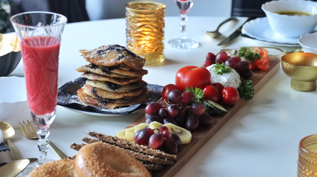 Op 1e kerstdag werd het een latertje dus we slapen uit! Althans dat geldt voor de heren, Marieke was vroeg uit de veren, AGAIN! Want als ze eenmaal wakker is dan wordt ze onrustig. In de verte horen de halfslaperige heren een geneurie dat vanuit de keuken komt… Marieke staat namelijk al pancakes te bakken! Wat een heerlijkheid!