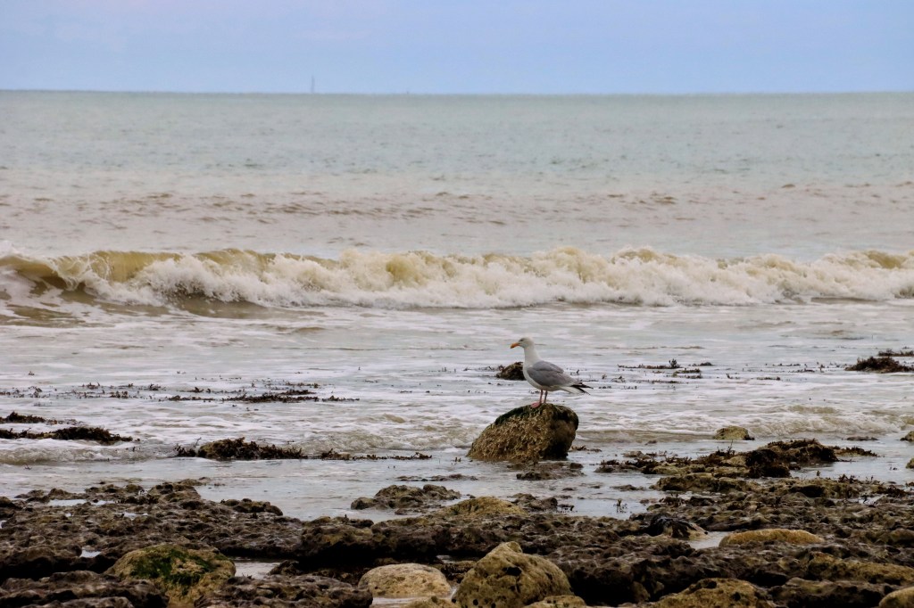 We reizen een eindje verder naar het strand bij de beroemde Seven Sisters; zeven tegen elkaar aanstaande krijtrotsen op de kustlijn. In plaats van bovenop de rotsen staan we nu aan de voet. Het is een prachtig landschap: de Atlantische oceaan, het grote kiezelstenenstrand en de witte krijtrotsen. Doordat het eb is is een groot gebied droog komen te liggen. Grote keien met algen zorgen voor een mooi groen kleureffect in het landschap. Zeth ziet met zijn verfijne blik hoe talloze slakjes en andere schelpen zich op én in de stenen bevinden en dan komt het besef: wij zijn in hún leefgebied. Als een ware natuuractivist roept hij daarom de mensen op tot ‘peace and respect for animals en the vegan community’.