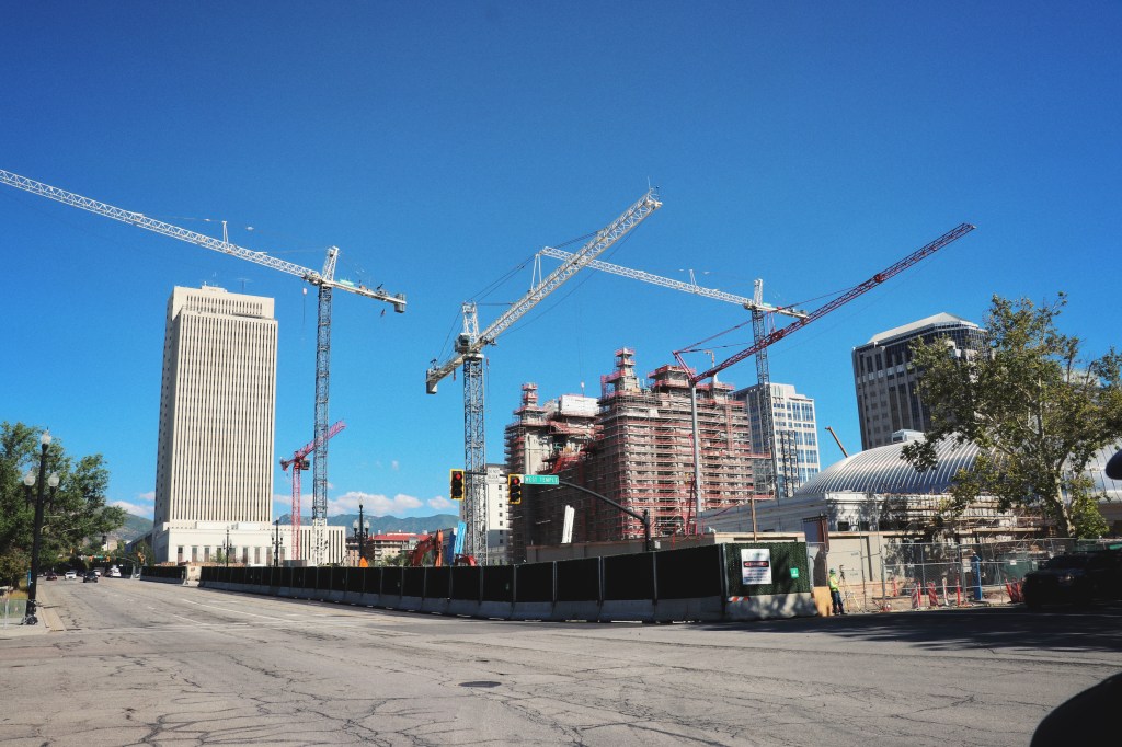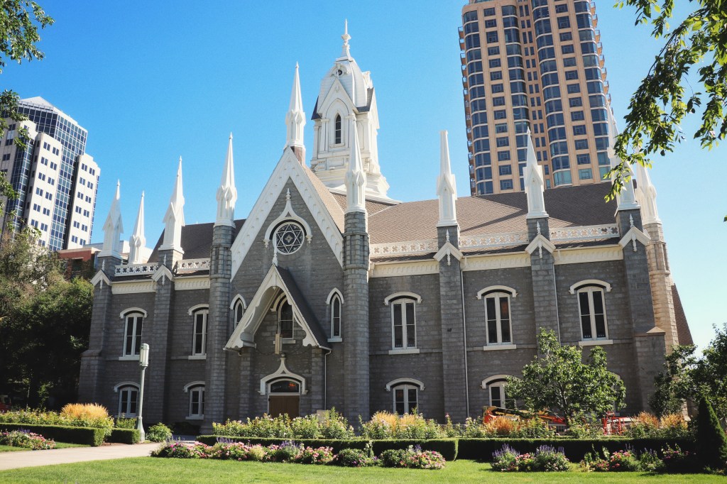 Omdat alles zo vlot is verlopen hebben we eigenlijk nog zeeën van tijd over. Daarom besluiten we onze chauffeur lief aan te kijken en rijdt hij ons even later tegen een fooi naar het centrum van Salt Lake City. De stad die bekend staat om de Olympische winterspelen, maar die ook onlosmakelijk verbonden is aan de Mormoonse kerk. De Salt Lake-tempel is een tempel van de Kerk van Jezus Christus van de Heiligen der Laatste dagen op temple square. Met een oppervlakte van 23.505,9 m² is het qua vloeroppervlak de grootste en bekendste tempel van de mormonen wereldwijd. Helaas is de tempel momenteel niet toegankelijk omdat de fundering grondig wordt vervangen voor in de toekomst verwachte aardbevingen. Maar nog altijd is er genoeg te zien, want naast de tempel staat het hele temple square in het teken van de mormoonse religie. Zo zijn ook het congrescentrum, de Salt Lake Tabernacle, de Salt Lake Assembly Hall en het Seagull monument op Temple Square te vinden. Indrukwekkend om te zien hoe veel en hoe groot de gebouwen zijn.