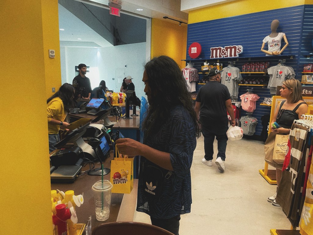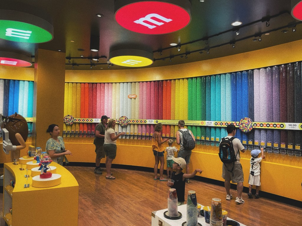 Wij eten fastfood en genieten van de gekte van deze stad en de leuke winkels, zoals de 4 verdiepingtellende m&m store en coca cola winkel.