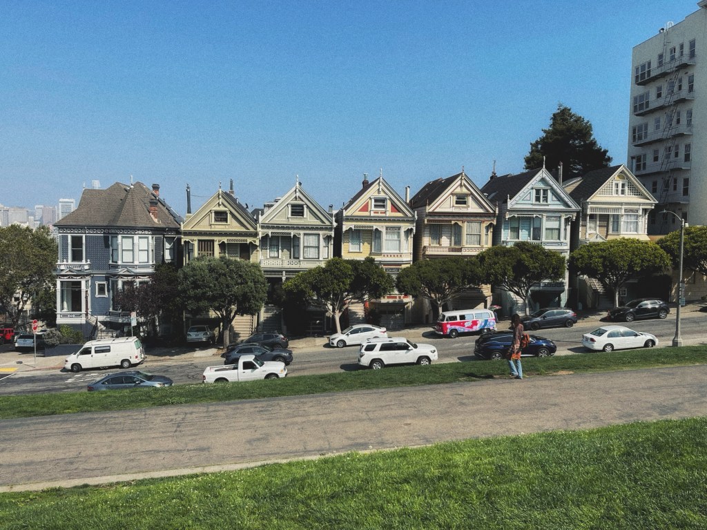 De auto zet ons af bij een van de highlights van de stad: The painted ladies. Een rij victoriaanse huizen met prachtig bewerkte gevels, onder andere bekend van de serie Full House.