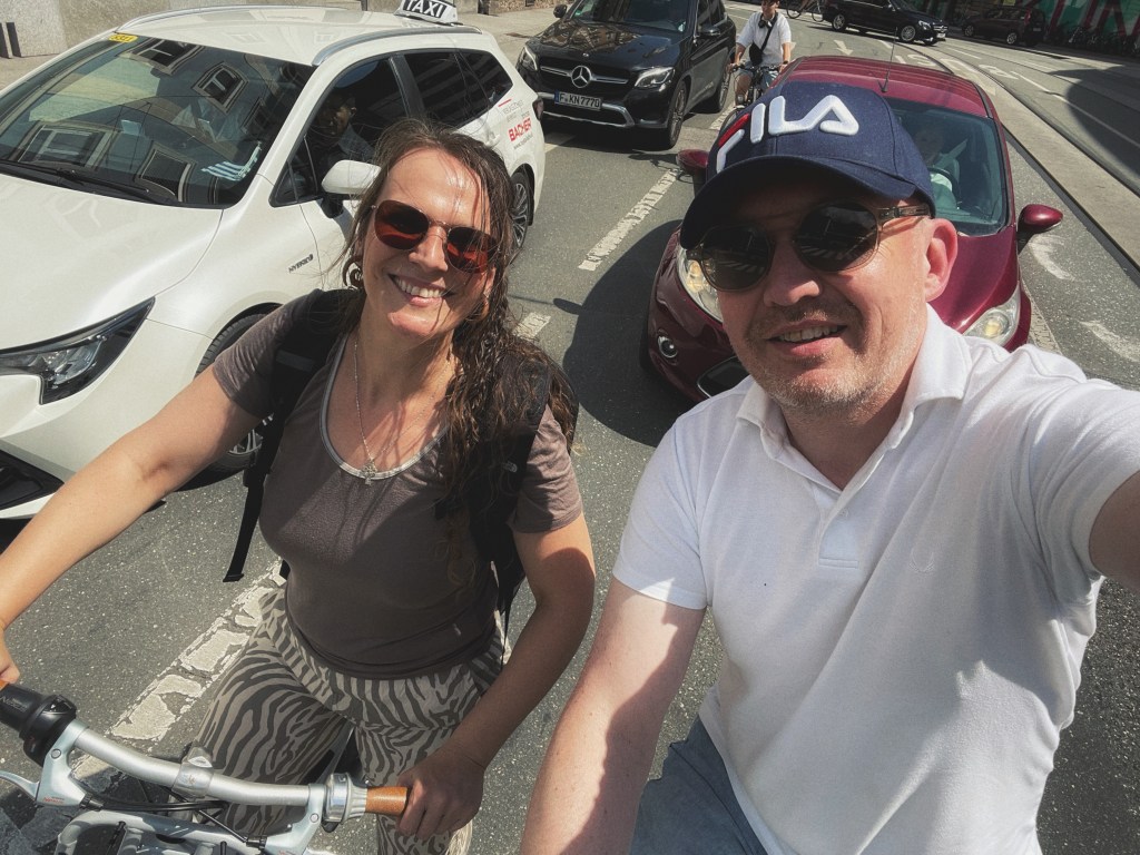 Ondertussen fietsen Aad en Marieke zich een slag in de rondte op een niet-elektrische leenfiets bij minstens 26 graden. Maar we klagen niet. De fietsen zijn namelijk gratis via een stadtrad (soort OV) systeem en een gegeven paard kijk je nou eenmaal niet in de bek. Aad en Marieke fietsen naar een kringloop in de buurt. Kats bezweet komen we aan, maar opnieuw klagen we niet. Want er gaat niets boven lekker struinen in de flohmarkt. We kopen niks, maar maken nog wel een gezellig praatje met een oudere dame die ontzettend is gecharmeerd van Nederlandse mensen. En laten wij daar nou ook twee van zijn.