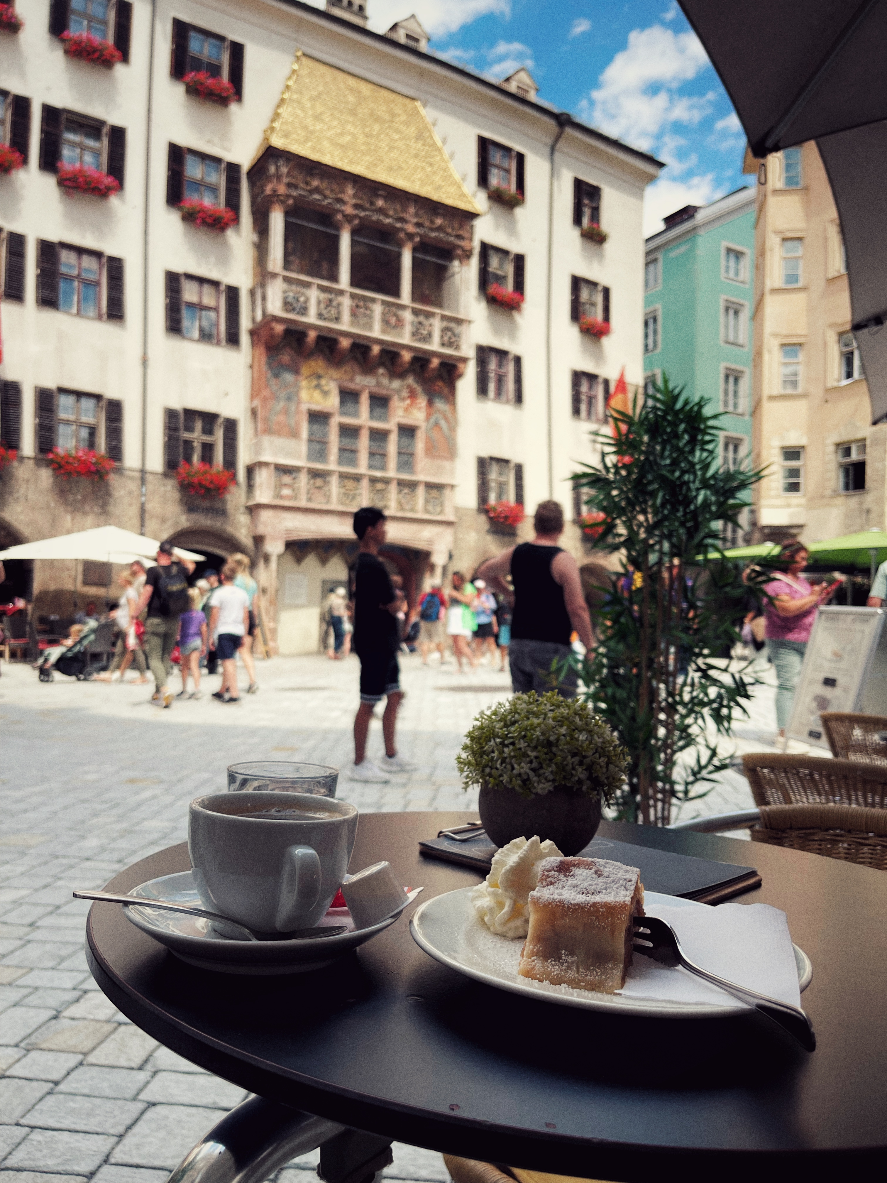 Goed, ander onderwerp. We komen aan in Innsbruck, met als plan om een fiets te lenen en de stad te verkennen. Zeth bedenkt dat hij toch wel heel graag zijn boek verder wil lezen, want het is zo spannend en hij heeft ook niet echt zin in iets actiefs. En dat terwijl hij nog wel elke ochtend wilde gaan hardlopen. Subtiel laat hij weten dat Aad en Marieke wel zonder hem mogen gaan fietsen. Na enig aandringen brengen we Zeth toch niet op andere gedachten en scheiden onze wegen. Zeth neemt het ervan om even lekker me-time te hebben, struint wat winkeltjes in, bestelt een lekkere apfelstrudel en eindigt met zijn spannende boek onder de boom in de Hofgarten van het paleis van Sissi. Niet de minste plek om even op adem te komen.