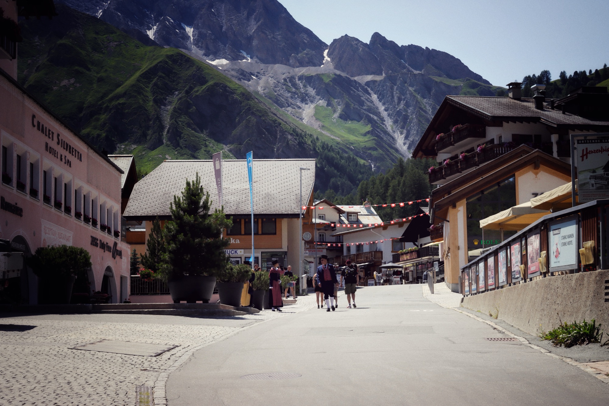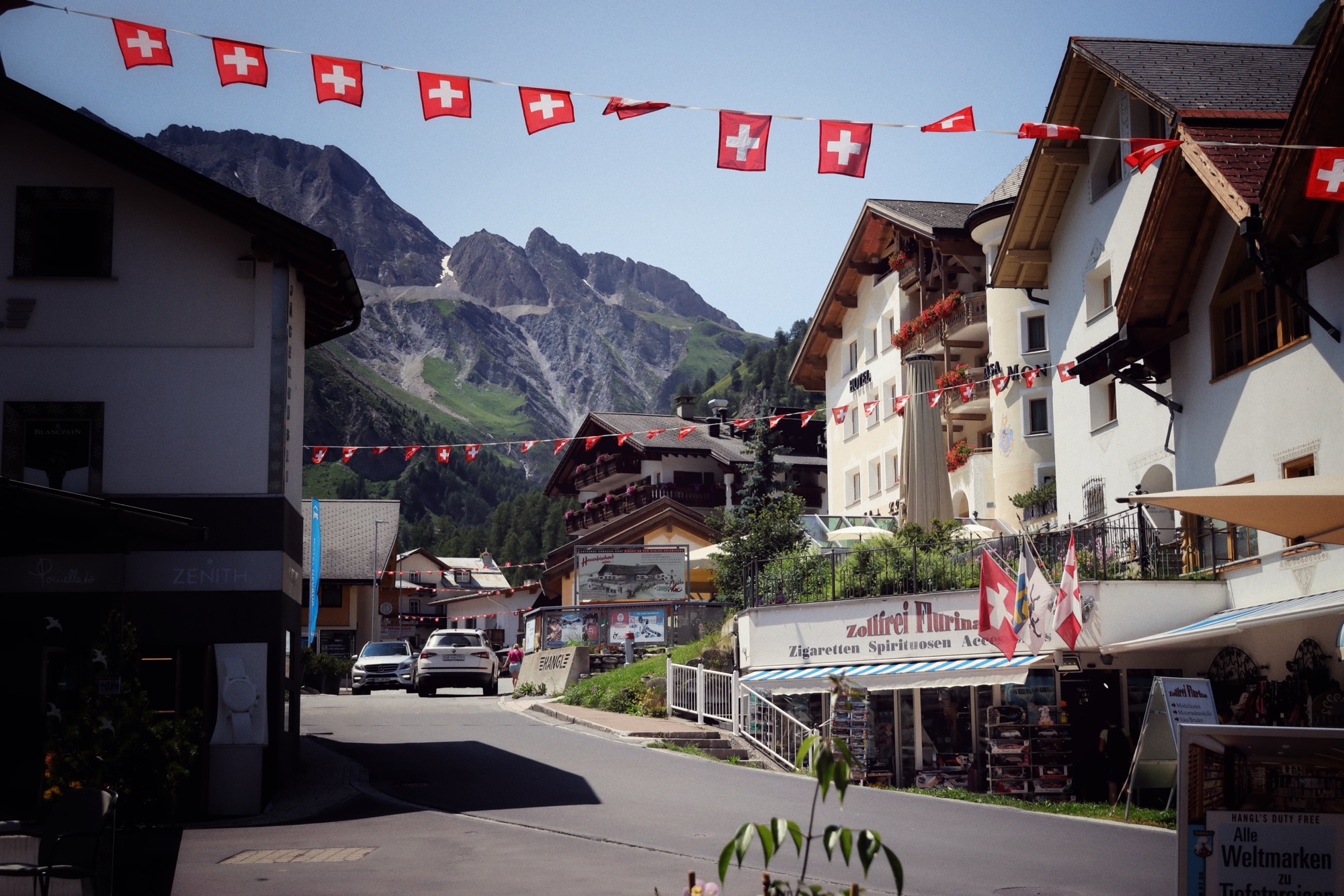 We komen aan in Samnaun op ongeveer 1850 meter hoogte. Een gezellig plaatsje op de rand van de boomgrens. Met zijn souvenirs, likeuren, parfums en sigaretten is het een goede mix van Bataviastad en de taxfree zone op een vliegveld. Ondanks dat het aanbod overal wel zo ongeveer hetzelfde is en we hier al eerder zijn geweest, lukt het ons toch om de hele dag hier door te brengen. En het is niet voor niets, want onze opbrengst liegt er niet om: horloge, tassen, parfum, make-up, sterke drank, verzorgingsproducten en sigaretten voor het thuisfront.