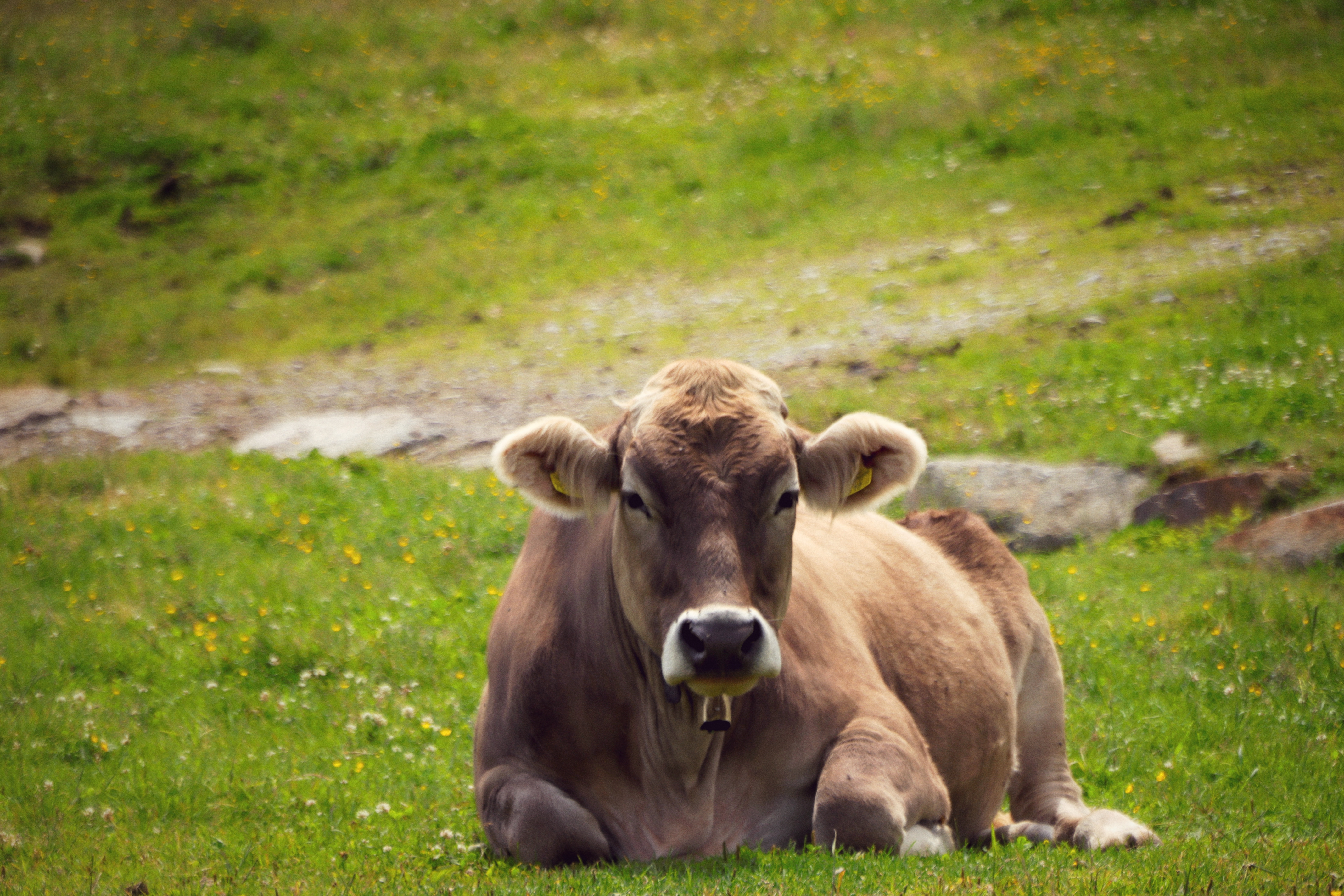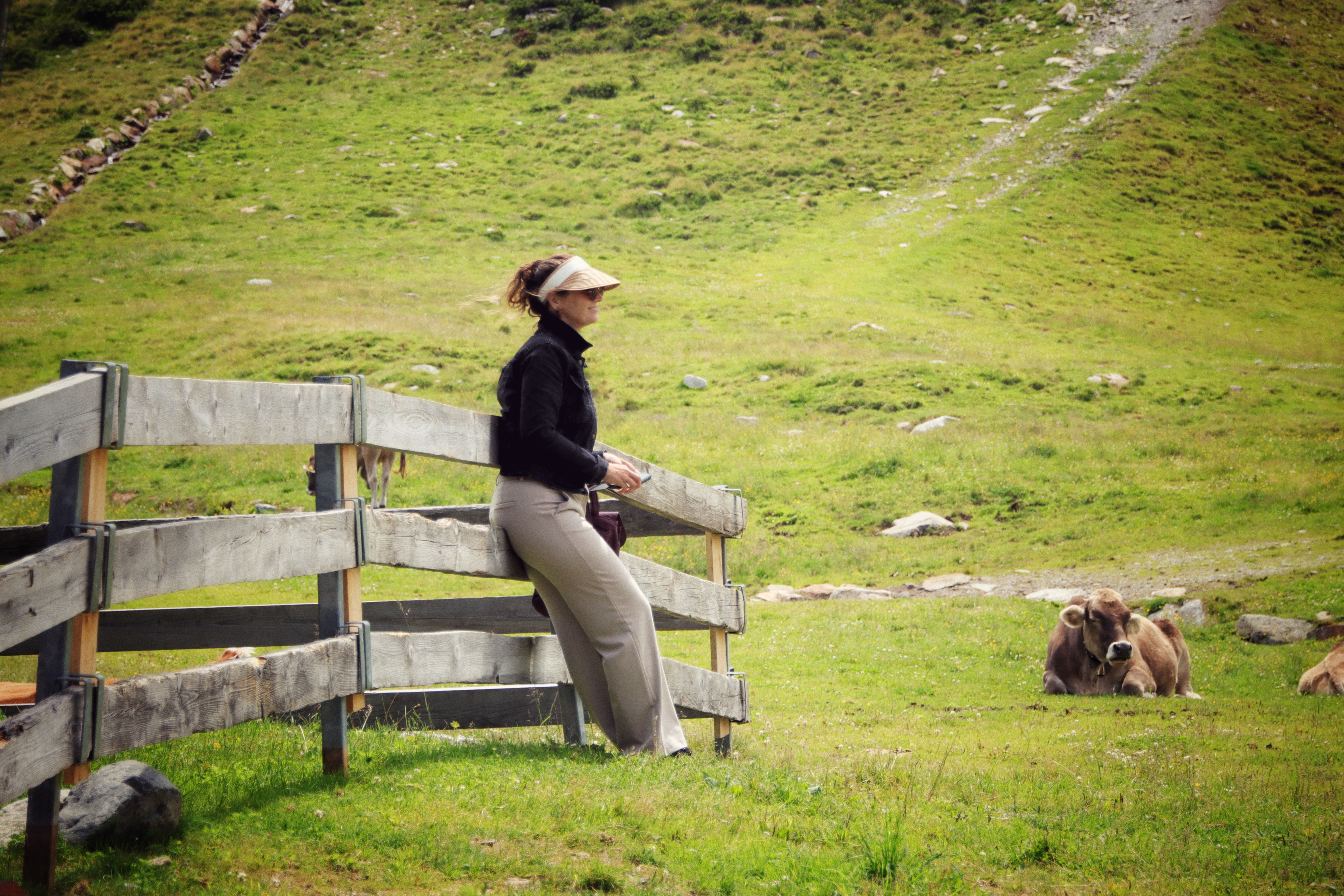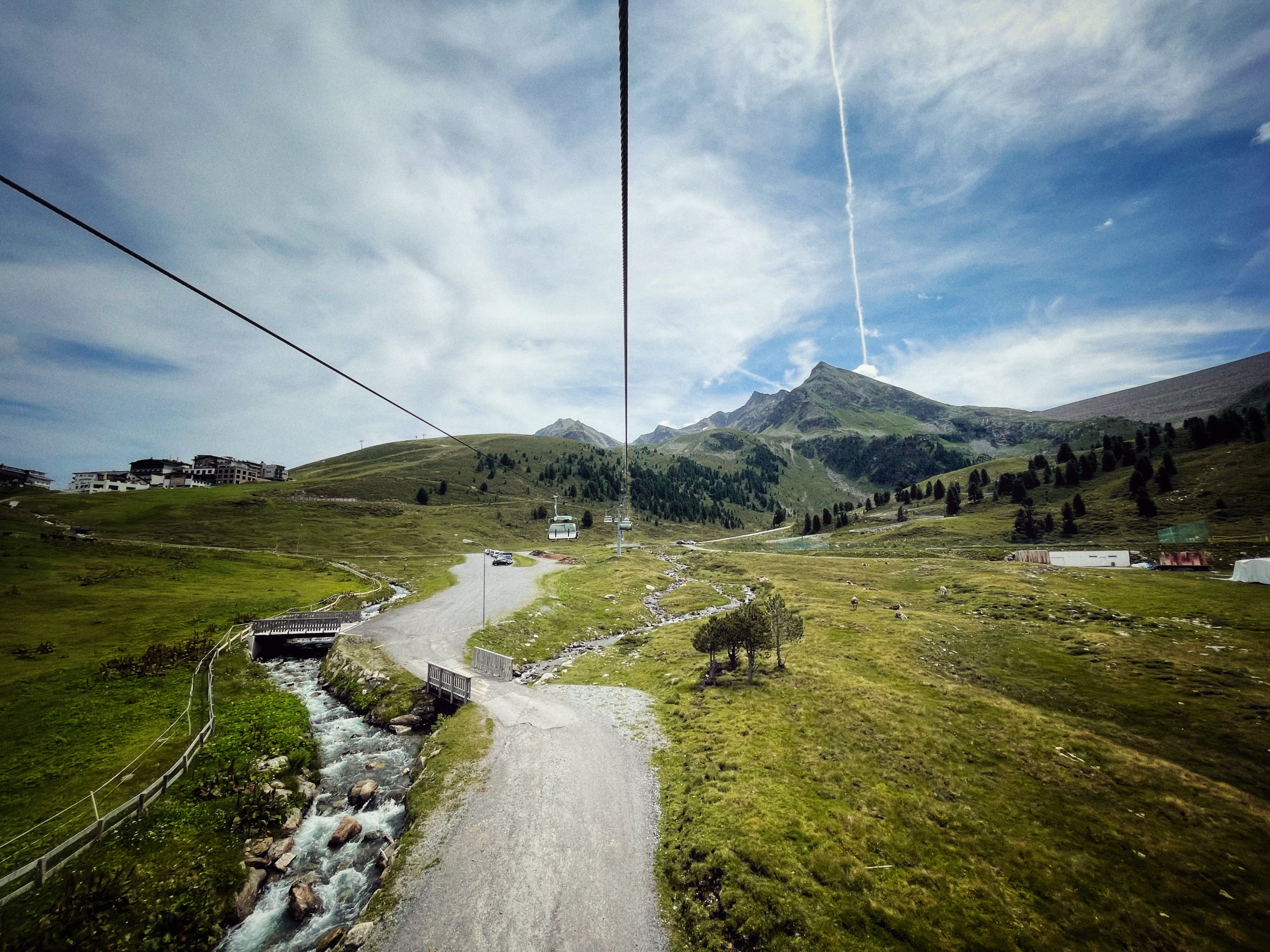 Om 12 uur rijden we richting Kühtai, een bergdorpje op 2200 meter hoogte, zo’n 40 minuten van ons huis. We nemen de Drei-Seen-Kabelbahn, waar we met onze welkomstkaart gratis gebruik van kunnen maken. Heerlijk in de buitenlucht met de stoeltjeslift, terwijl we ‘Top of the World’ zingen. Het wijdse uitzicht over de bergen met her en der nog wat sneeuw op de toppen, het blauwe bergmeer en de vele koeien met hun typische koebellen maken het Alpengevoel compleet. We zouden bijna gaan jodelen.