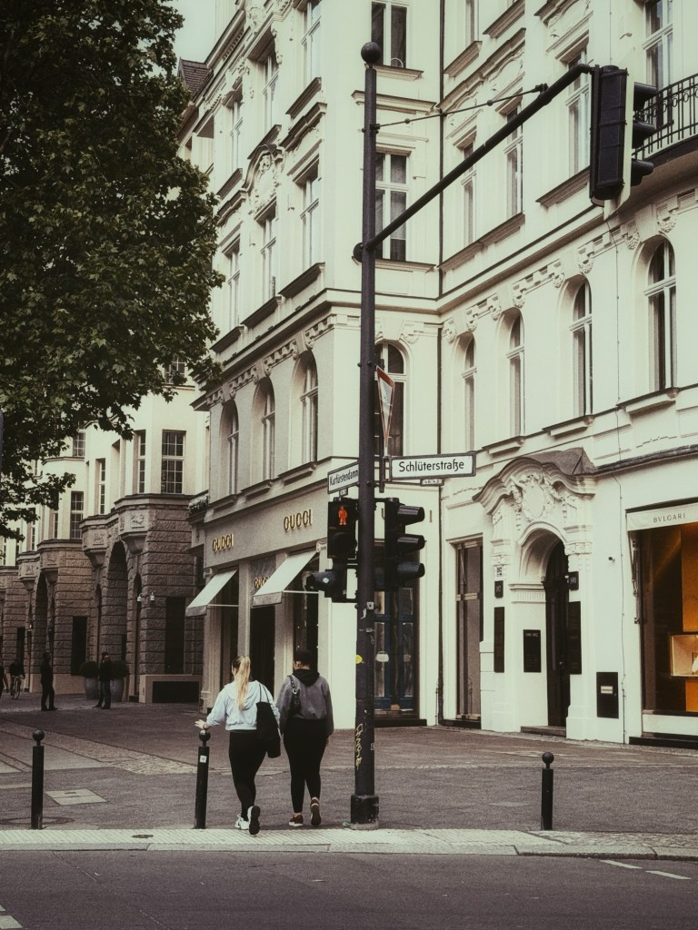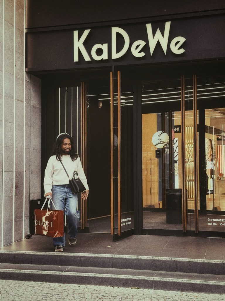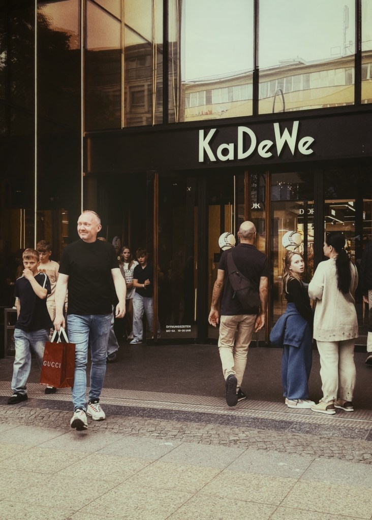 Met een lege portemonnee besluiten we nog even verder te winkelen op de Kurfürstendamm—vooral het chiquere stuk, ook wel de PC Hooftstraat van Berlijn. Gewoon, om de sfeer te proeven. Of om onszelf even voor te stellen als mensen met een limietloze creditcard.