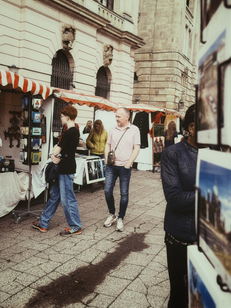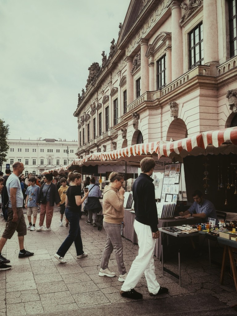 Na het ontbijt maken we ons klaar voor een bezoek aan de Fernsehturm. Maar onderweg lopen we ineens een kunst- en antiekmarkt op, tussen de Berliner Dom en de Schlossbrücke, vlak bij het Bode-Museum.