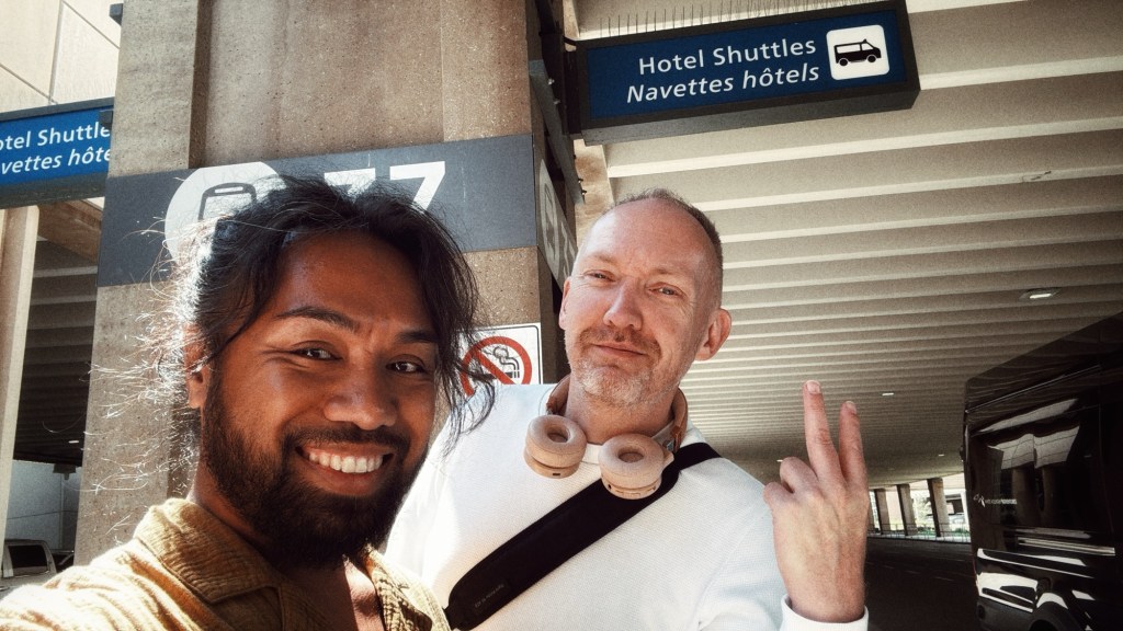 De eerste keer was op het NS-station in Almelo, de tweede keer in het vliegtuig, en nu we echt in Canada zijn voor de derde keer.