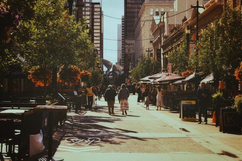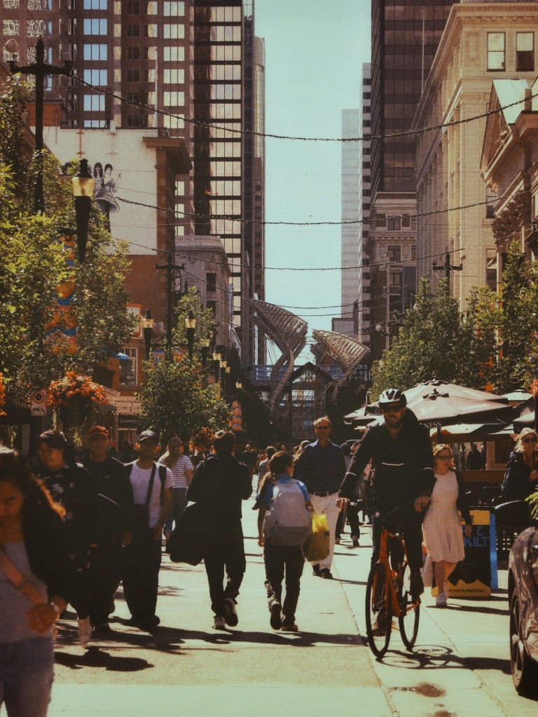 Eenmaal opgefrist, bestellen we een Uber en laten ons naar downtown Calgary brengen.